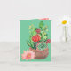 Cactus, Suculentas, Flor de Cactus, Tarjeta de felicitación doblada -Un hermoso cactus pintado lleno de suculentas, cactus y colores hermosos, como en el cactus lunar injertado. La flor de cactus rosa se sienta junto a la maceta de cactus, dando aún más aspecto tridimensional a esta tarjeta. El interior de la tarjeta está decorado con algunas plantas de cactus más pequeñas con flores y el mismo fondo verde.