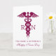 Feliz Día de las Enfermeras, tú haces una diferencia. Una tarjeta de saludo con un símbolo de caduceo rojo elegante con las letras R N a cada lado. Diseño minimalista simple. Mensaje personalizado dentro.
