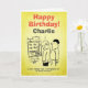 Máquina de cajero automático bancario se ríe del cliente que ha solicitado un extracto. Divertido cartoon bancario de Nigel Sutherland. Tarjeta de cumpleaños para un usuario de cajero automático o quizás un empleado de banco.