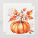 Tarjeta Calabaza Naranja acuarela y hojas otoñales
