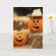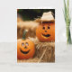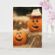 Tarjeta Calabazas Felices de Otoño Sobre Pacas de Heno