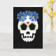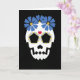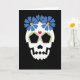 Tarjeta Calavera con flores azules