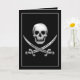 Tarjeta Calavera pirata y cruces de espadas vidriosas