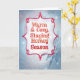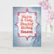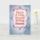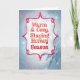 ¡Celebra la temporada cálida y acogedora con esta caprichosa y ligeramente retro tarjeta de vacaciones! El diseño presenta capas de copos de nieve blancos, azules y rosa rojizo suave abstraídos que giran en un cielo azul brumoso, creando profundidad y una atmósfera invernal soñadora. Un marco de floritura roja cardinal modernizada y divertida resalta contra el fondo, destacando la letra roja brillante sobre blanco crujiente, con texturas nevadas que se asoman detrás como una tormenta suave.