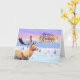 Esta tarjeta "Feliz Navidad" presenta un paisaje con árboles y un reno de polígono.