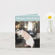 Esta tarjeta de cumpleaños editable surrealista presenta mi retrato de una rata, llevando una bandeja de copas de vino en un restaurante. Una gran tarjeta para el hombre de tu vida, o un dueño de rata mascota.