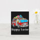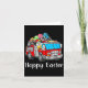 Tarjeta Camión bombero Día de Pascua conejo huevos feliz e