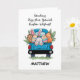 Haz de Pascua algo especial con esta divertida y festiva carta que incluye un conejito juguetón sumergiéndose en una pila de coloridos huevos de Pascua estampados en la parte trasera de una camioneta azul. Con sólo la esponjosa cola del conejito y los pies a la vista, este diseño caprichoso aporta un toque alegre a las vacaciones. El frente incluye un nombre de personalizable, lo que lo convierte en un saludo único y personal no sólo para niños, sino también para adolescentes, adolescentes o incluso adultos. En el interior, un mensaje alegre desea diversión, sorpresas y un poco de magia conejita extra - perfecto para difundir la alegría de Pascua a la familia, amigos o a cualquiera que se merezca una sonrisa!