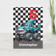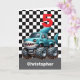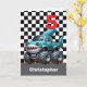 Un camión monstruo de tiburón personalizado tarjeta de quinto cumpleaños para los chicos. Con un fondo de cuadros negros y blancos en la parte delantera con un lugar que puede personalizar fácilmente la edad si es necesario. Un camión gigante de tiburones azules encantará a todos los fanáticos de los camiones de tiburones y monstruos. Una elección de una tarjeta de cumpleaños personalizada para tu hijo, sobrino, nieto, etc.