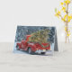 Tarjeta Camión Retro Rojo Con Árbol De Navidad En Copos De