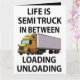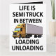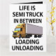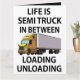 Tarjeta de felicitación para camionero diseñada por Nisha Prabhu. Con ilustración de camión semi con tipografía juguetona ''La vida es un camión semi entre carga y descarga''. ¿Buscas la forma perfecta de mostrar aprecio a un conductor de camión semi o camionero en tu vida? No busques más que esta tarjeta de felicitación única, que presenta un diseño audaz y llamativo que celebra el arduo trabajo y dedicación de la industria del transporte. Ya sea para un cumpleaños, un día festivo o simplemente para decir gracias, esta tarjeta seguramente causará un gran impacto. Seguro que será un éxito con cualquier camionero o entusiasta de los camiones, esta tarjeta de felicitación es la forma perfecta de mostrar aprecio a los héroes desconocidos de la carretera. ¡Ordena la tuya hoy y haz que el día de alguien sea un poco más brillante!