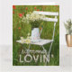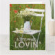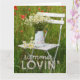 Diseño de tarjetas de felicitación adorable y editable con bello motivo de verano. Una silla blanca de madera en un campo de verano con un jarrón con flores de camomila blanca. Cachorros alrededor de la silla. ¡Disfrútalo! © Fotografía de UtART 2017