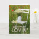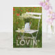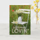 Diseño de tarjetas de felicitación adorable y editable con bello motivo de verano. Una silla blanca de madera en un campo de verano con un jarrón con flores de camomila blanca. Cachorros alrededor de la silla. ¡Disfrútalo! © Fotografía de UtART 2017