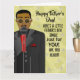Esta tarjeta del Día del Padre presenta a un hombre afroamericano con un traje negro y gris con micrófono. Obtén esta tarjeta del día del padre para ese papá especial en tu vida.
