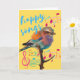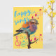 Canciones felices por un cumpleaños feliz. En la portada de esta tarjeta se muestra un pájaro colorido, música y colores brillantes. Arte, imagen y verso copyright © Shoaff Ballanger Studios, 2022.