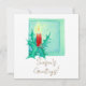 Brighten the holiday season with this elegant watercolor Christmas card featuring a glowing red candle nestled among festive holly leaves. Set against a soft, hand-painted teal background, the design brings warmth and charm to your seasonal greetings. Finished with a stylish handwritten “Season’s Greetings!” message, this card is perfect for sharing holiday cheer with friends, family, and colleagues. A beautiful choice for anyone who loves classic, artistic holiday stationery.