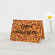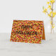 Colorida tarjeta de Halloween con diseño de maíz dulce, feliz saludo de Halloween a la portada, saludo en horario de golosinas por dentro.