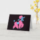 Una tarjeta de felicitación de caniche rosa y azul colorida.