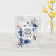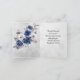 La tarjeta de saludo con cita inspiradora representa un elegante diseño de acuarela floral con flores de color azul oscuro y bayas rojas sobre un fondo gris. Presenta el versículo bíblico del Cantar de los Cantares 3:4, "He encontrado al que ama mi alma". El saludo es de Números 6 24-26, "El Señor te bendiga y te guarde; El Señor haga resplandecer su rostro sobre ti, ...Y te dé paz". Puede ser personalizada y la tarjeta utilizada para muchas ocasiones.