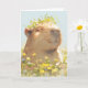 Esta deliciosa tarjeta de capibara recibe a los huéspedes con un ilustracion reconfortante de un capibara con ojos cerrados y lleno de contenido, que disfruta en un prado adornado con flores silvestres vibrantes. El capibara, con una suave corona de vegetación, desprende un ambiente tranquilo y alegre, ideal para los amantes de los animales y de la naturaleza. Su suave acuarela le confiere un encanto excepcional, por lo que es una opción ideal para aquellos que aprecian el arte animal tranquilo y las escenas de la vida salvaje. Perfecto como regalo o placer, esta carta aporta un toque de serenidad a la naturaleza.
