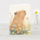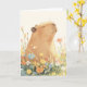 Esta encantadora tarjeta de felicitación presenta un sereno carpincho parado en medio de una colorida variedad de flores de pradera, con los ojos suavemente cerrados como si disfrutara de la cálida luz del sol. Los suaves tonos pastel y la caprichosa escena floral traen una sensación de paz y relajación, lo que hace que esta tarjeta sea ideal para enviar saludos sinceros o mensajes alegres. Perfecta para los amantes de la naturaleza y los entusiastas de los animales, esta encantadora ilustración captura la personalidad suave del carpincho y seguramente traerá una sonrisa al día de cualquiera.
