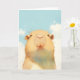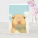 Esta encantadora tarjeta de saludo captura un retrato de un capibara mirando tranquilamente contra un cielo sereno con nubes suaves. El suave estilo acuático y los colores pastel crean una imagen cálida y acogedora que irradia tranquilidad y cordialidad. Perfecto para los amantes de la naturaleza, los aficionados a los animales o cualquiera que aprecie el arte caprichoso de los animales, esta tarjeta es ideal para cumpleaños, gracias o simplemente enviar una sonrisa. La expresión de calma del capibara frente al cielo claro hace de esta tarjeta una forma hermosa y única de alegrar el día de alguien, celebrando el encanto y el espíritu amable de estas criaturas adorables.