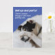 Graciosa foto de un perro tendido en la cama escondiendo su cara bajo su pata. Sé exactamente cómo se siente al envejecer. La tarjeta dice: "¡Levántate y fiesta! Hay cosas peores en la vida que envejecer..." Dentro de la carta dice: "No puedo recordar lo que son, pero estoy seguro de que es mucho peor. ¡Feliz cumpleaños!"