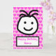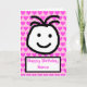 Dibujo animado lindo de una gran cara sonriente con las palabras 'Feliz Cumpleaños'. La tarjeta tiene un fondo rosa con corazones. Personaliza fácilmente esta tarjeta editando el texto de la plantilla en el frente y en el interior. ¡Gracias por ver mis diseños!