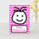 Dibujo animado lindo de una gran cara sonriente con las palabras 'Feliz Día de la Madre'. La tarjeta tiene un fondo rosa con corazones. Personaliza fácilmente esta tarjeta editando el texto de la plantilla en el frente y en el interior. ¡Gracias por ver mis diseños!
