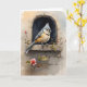 Tarjeta Carbonero Crestado descansando Flores en alféizar