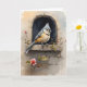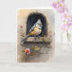 Tarjeta Carbonero Crestudo Descansando Flores en el Alféiz