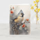 Tarjeta Carbonero Crestudo descansando sobre flores rojas