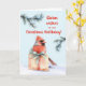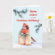 Un encantador cardenal rojo con aclamación festiva se sienta encima de un regalo envuelto bajo nevados ramos de pino, haciendo de esta una manera dulce de celebrar un cumpleaños que cae sobre los Navidades. El arte combina la belleza del invierno con la calidez de un día especial, perfecto para enviar reflexivos deseos que se sienten acogedores y luminosos.