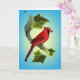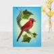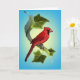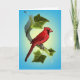 Este ilustracion gráfico presenta un cardenal rojo vivo macho encaramado sobre una rama translúcida adornada con hojas de hiedra verde.