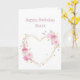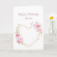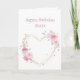 Tarjeta cardíaca de flores rosas de cumpleaños