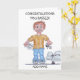 Tarjeta Caricatura de un hombre feliz que acaba de aprobar
