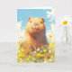 Esta encantadora tarjeta de felicitación presenta un capibara alegre que se mantiene orgulloso en medio de un vibrante campo de flores silvestres, mirando con una expresión cálida y amigable. Contra un cielo azul brillante, la escena emana alegría y paz, capturando la personalidad adorable del capibara. Con su estilo de ilustración detallado y caprichoso, esta tarjeta es perfecta para los amantes de los animales y los entusiastas de la naturaleza por igual. Ya sea para un cumpleaños, agradecimiento o simplemente para alegrar el día de alguien, esta tarjeta aporta un toque de encanto y calidez, lo que la convierte en una opción ideal para los fanáticos del capibara y cualquiera que aprecie el arte de animales adorables.