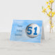 Una gran tarjeta de diversión para un golfista o una ocasión de golf. Una pelota de golf volando por el aire con 51 escritos en ella.