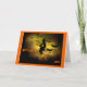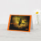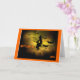 Colorida tarjeta Personalizado de Halloween con bruja volando sobre cementerio en su palo de labios y volando para desearle un feliz saludo de Halloween