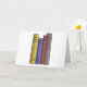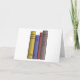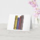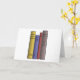 Ya sea que seas un ratón de biblioteca o conozcas a alguien a quien le gusta leer este es el diseño perfecto. Este diseño cuenta con cuatro libros de pie uno al lado del otro, mostrando las espinas de los libros. Cada libro es de diferente altura y color. Este diseño de cuatro libros se ve genial en estas tarjetas de felicitación