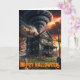 Tarjeta casa antigua con temática de tornado en halloween