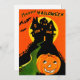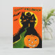 Tarjeta de la casa de Halloween obsesionada con el retro vintage Happy Halloween.