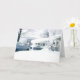 Tarjeta Casa nevada y coches de los años 50 hermosos