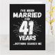 Gracioso regalo por el 41º aniversario del boda para las parejas que han estado viviendo la vida de casadas durante 41 años y que han visto y escuchado todo y nada les asusta. ¡Perfecto para una pareja casada que celebra 41 años de matrimonio con un fiesta del 41 aniversario de su boda! Este regalo para el aniversario de la novedad le dará muchas risas a su esposo, esposa o invitados fiestas. Meme de aniversario del matrimonio divertido titulado 'Me he casado 41 años nada me asusta'.