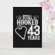 Este divertido diseño de aniversario de 43 bodas es perfecto para las parejas de pescadores que han estado casadas durante 43 años y que aún están enganchadas unas con otras y les encanta ir a pescar. ¡Genial para una fiesta del 43 aniversario del boda para celebrar 43 años de matrimonio! Presenta la cita del aniversario boda "Todavía enganchado después de 43 años" con anzuelos de pescado en forma de corazón con un gráfico de pescadores en un diseño de estilo vintage angustiado.
