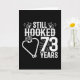 Este divertido diseño de aniversario de 73 bodas es perfecto para las parejas de pescadores que han estado casadas durante 73 años y que aún están enganchadas unas con otras y les encanta ir a pescar! ¡Genial para un fiesta del 73 aniversario de boda celebrar 73 años de matrimonio! Presenta la cita del aniversario boda 'Todavía enganchado después de 73 años' con anzuelos de pescado en forma de corazón con gráfico de pesca en un diseño de estilo vintage angustiado.