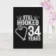 Este divertido diseño de aniversario de 34 bodas es perfecto para las parejas de pescadores que han estado casadas durante 34 años y que aún están enganchadas unas con otras y les encanta ir a pescar. ¡Genial para una fiesta del 34 aniversario del boda para celebrar los 34 años de matrimonio! Presenta la cita del aniversario del boda "Todavía enganchado después de 34 años" con anzuelos de pescado en forma de corazón con un gráfico de pescadores en un diseño de estilo vintage angustiado.