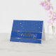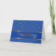 Esta tarjeta de felicitación tiene estrellas de oro minúsculas en un fondo azul y una raya azul con la línea de oro fronteras y la expresión: "Casandose." Dentro de, hay un saludo con enhorabuena en su boda. Esta tarjeta es un artículo de envío del boda elegante para felicitar sus amigos y amados en su día especial. Usted puede también hacer juegola con los pegatinas, envuelve, y sella.