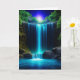 Tarjeta de cumpleaños personalizada. Cascada de agua iluminada por la bonito que atraviesa las montañas en el arte de los ai nocturnos.
