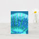 Una forma de la cáscara del mar de la concha de peregrino llena el frente entero de esta tarjeta de nota en blanco que muestra que apagado ha moteado los colores brillantes del océano en verde azul, verde azulado, del mar de la espuma y turquesa.